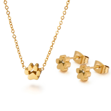 Our Bella Paws necklace and earrings set is made high quality stainless steel which is plated in gold for those wanting a warm finish or silver for those who prefer cooler tones.