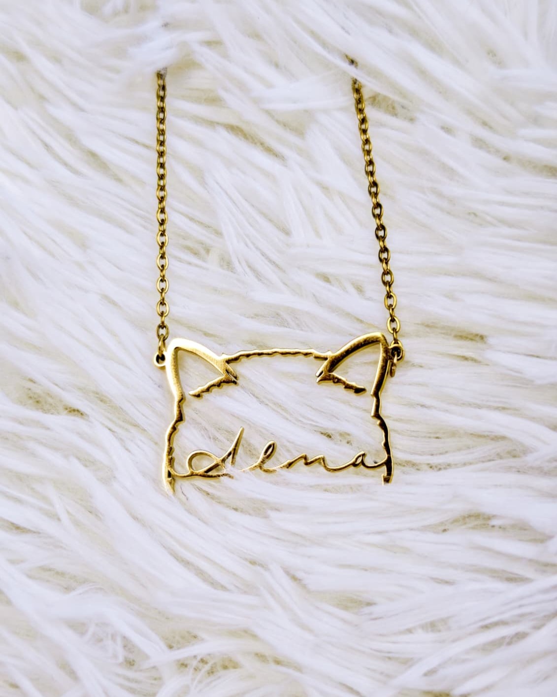 Crafted from high-quality stainless steel and finished with a smooth electroplated shine, this necklace features a delicate pet ears design personalized with your cat or dog’s name inside. Thoughtfully simple and deeply sentimental, it’s a timeless keepsake made to keep what you love close.