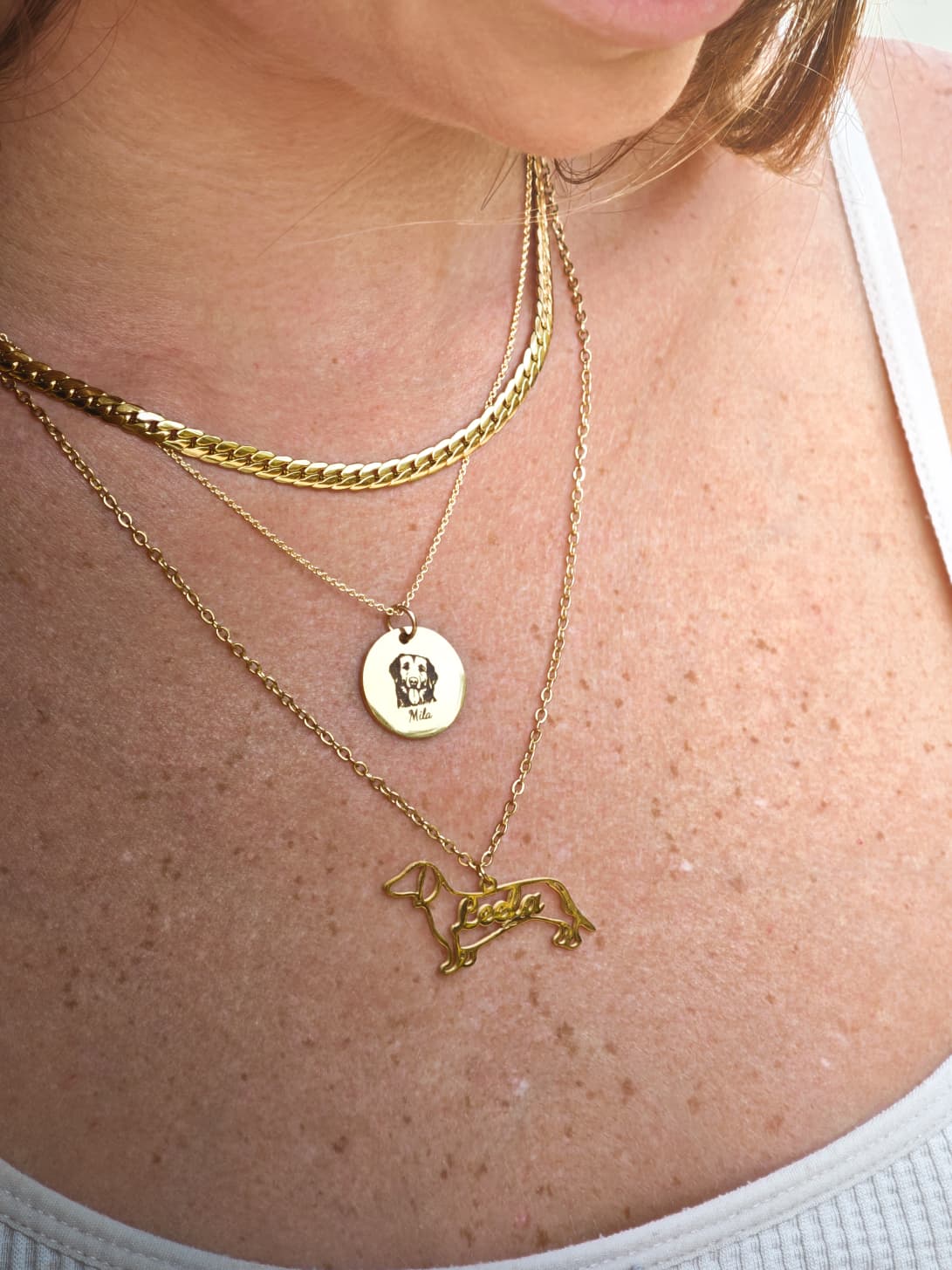 Our Lulu Tag necklace is made from durable titanium steel and available in silver or gold.