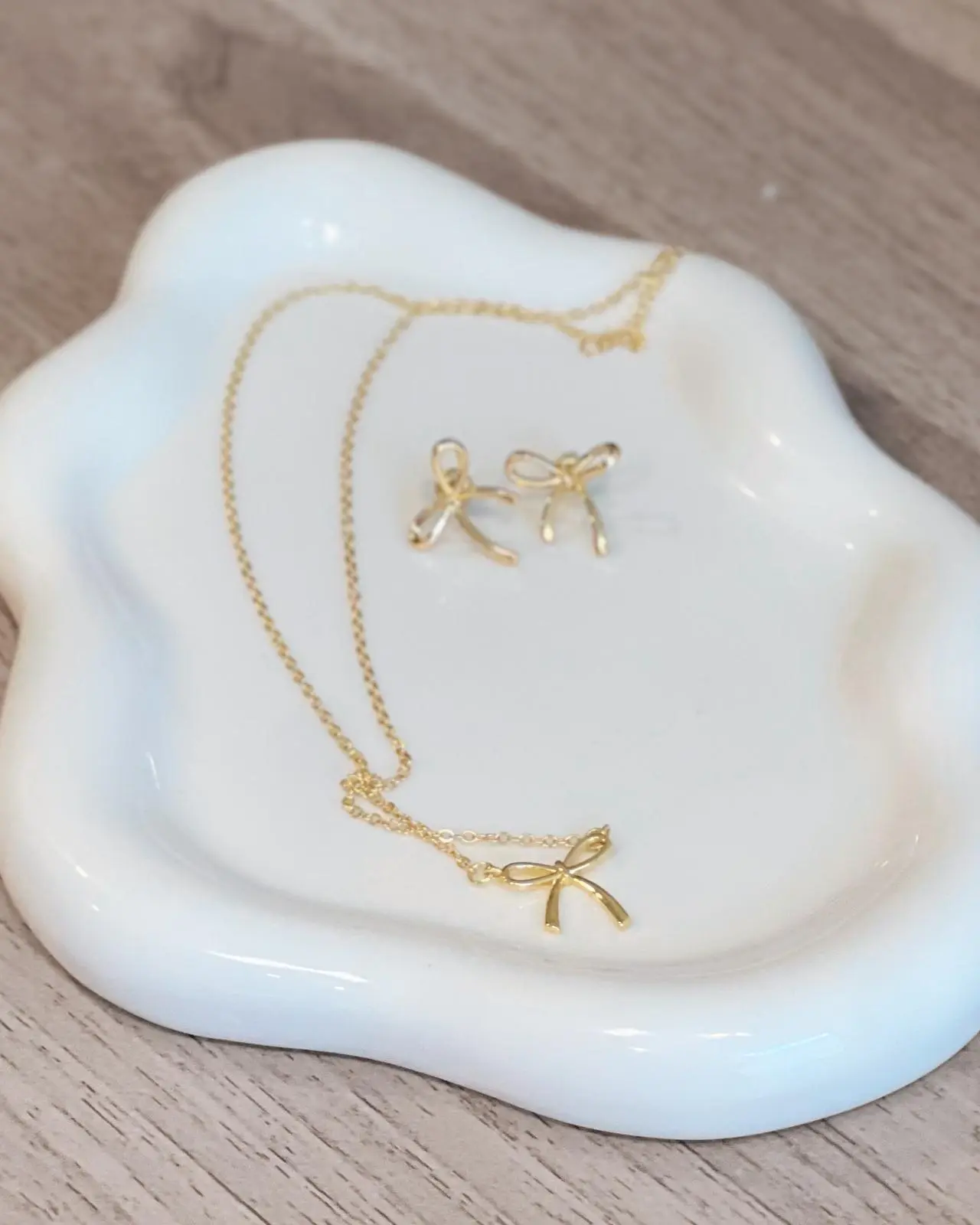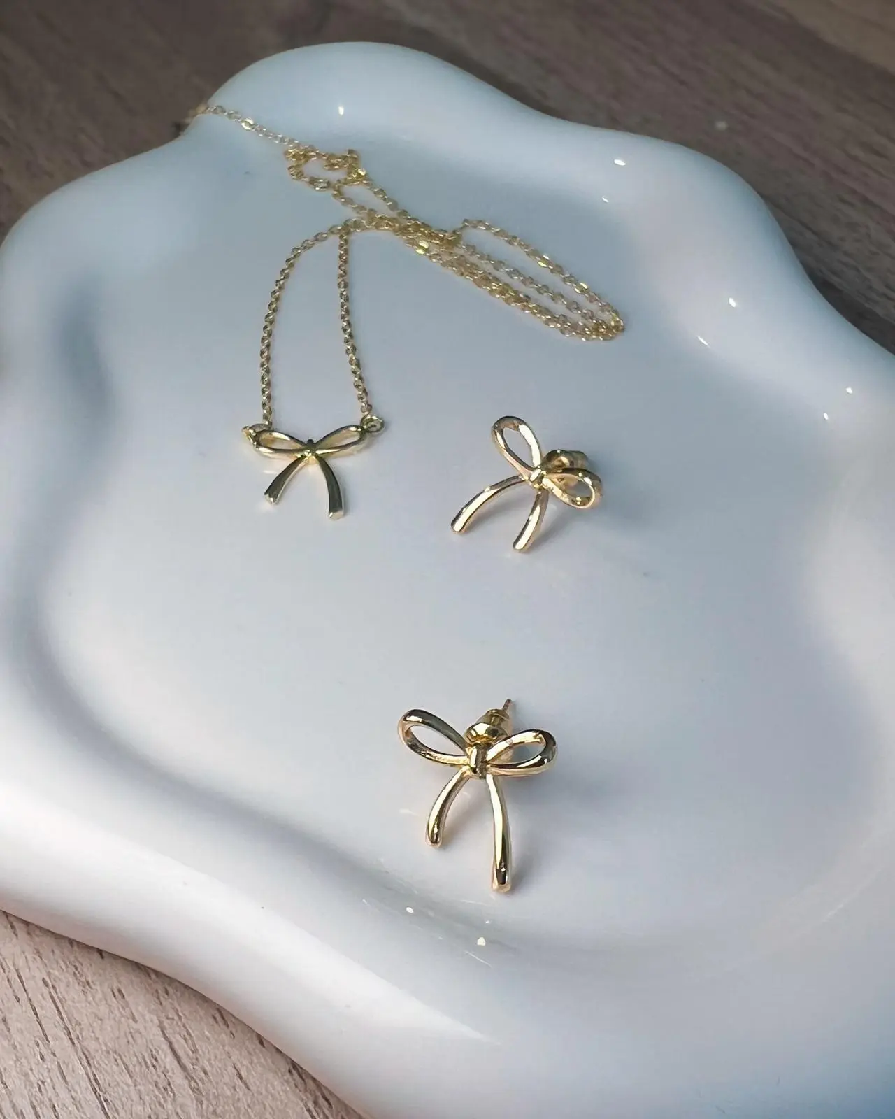 Named in honour of Shada, the first Palestinian mother we were able to support, this collection features a delicate 14ct gold or sterling silver bow, with option of buying the necklace and earrings individually. Elegant and enduring, it serves as a meaningful reminder of strength, resilience, and hope.