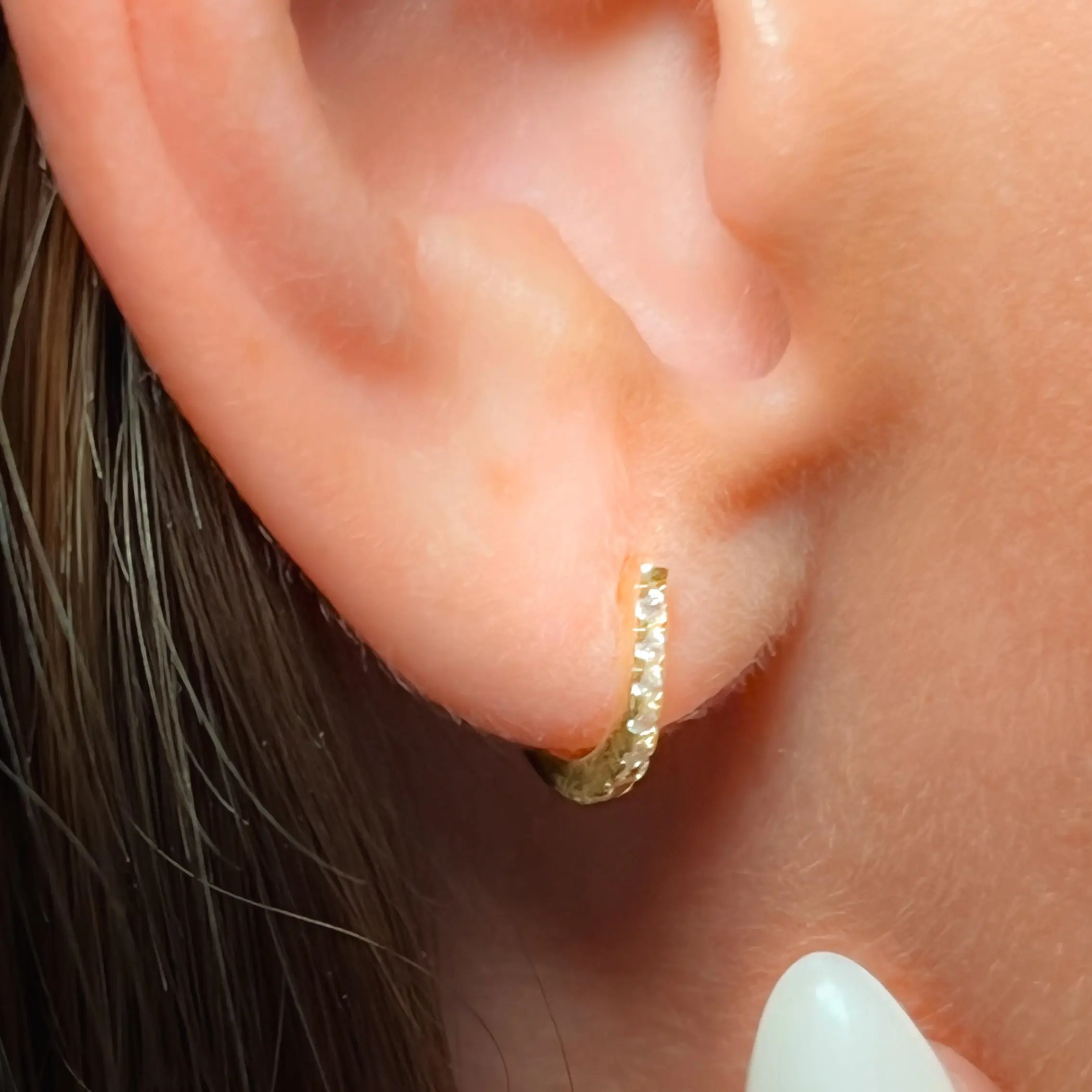 Elevate your everyday look with the Noora Huggies Earrings, crafted from premium S925 sterling silver for lasting shine and durability. These delicate huggie hoops feature sparkling round-cut diamond accents, adding a subtle yet luxurious touch to any outfit.