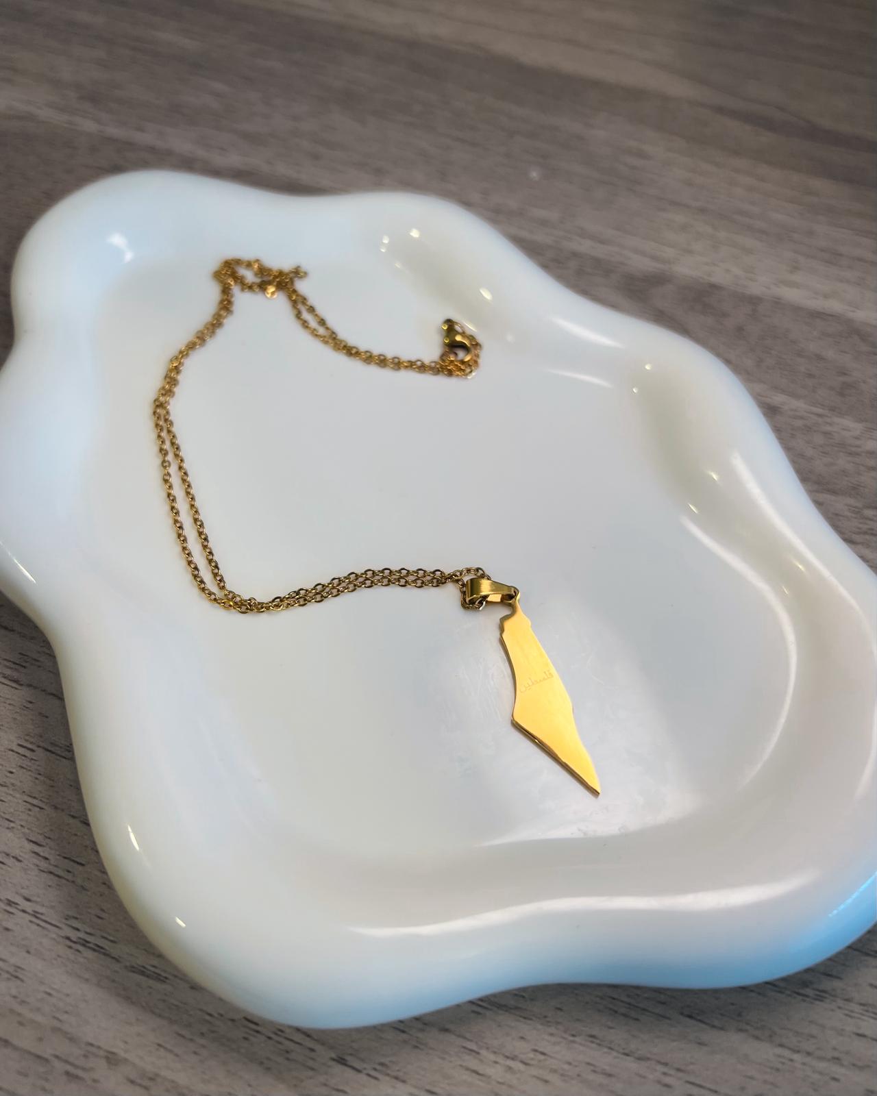 Crafted from titanium steel and finished with electroplating, the Map of Palestine Necklace is made to withstand everyday wear while keeping its brilliant shine. Strong, durable, and timeless — just like the resilience of the people it represents.